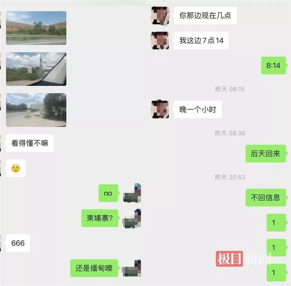 李先生提供的聊天记录显示,李尉标告诉堂姐自己在国外,要出去挣钱,一周内就回,还发来带有外文标识的路边的照片。李先生说,后来儿子就没再回复堂姐消息,其堂姐随后将情况告诉给了家人,“我得知情况就在麻江本地报了警,第二天也去了广西防城港东兴市报了警。”
