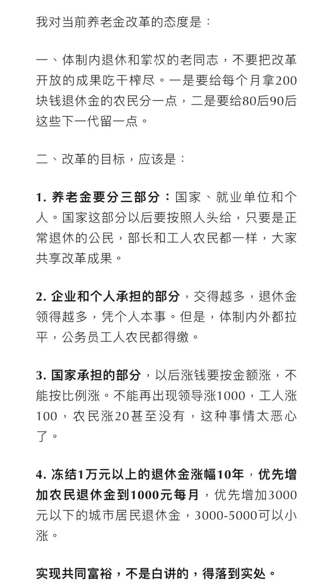 这个说法我完全同意,尤其是第四条,很有智慧。这两天很多人在提对岸蔡英文砍军公教的养老金,按道理大陆也应该砍,但在我们这里难度太大,所以冻结涨幅是一个退而求其次,追求可行性的方案。