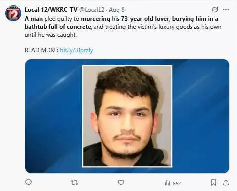 美国夏威夷欧胡岛(Oahu)发生一起骇人听闻的情杀命案。26岁男子胡安.巴隆(Juan Baron)承认弑杀73岁情人盖瑞.鲁比(Gary Ruby),将其尸体封在浴缸中以水泥覆盖,再佔用死者价值约120万美元的豪宅与奥迪A6名车长达数日,直到警方破案。