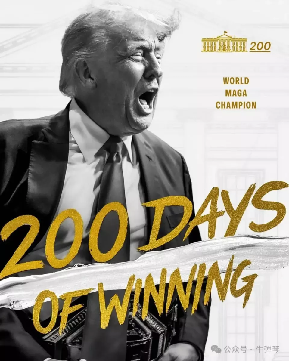 算起来,特朗普2.0已整整两百天了,白宫的海报,就是特朗普总是赢。