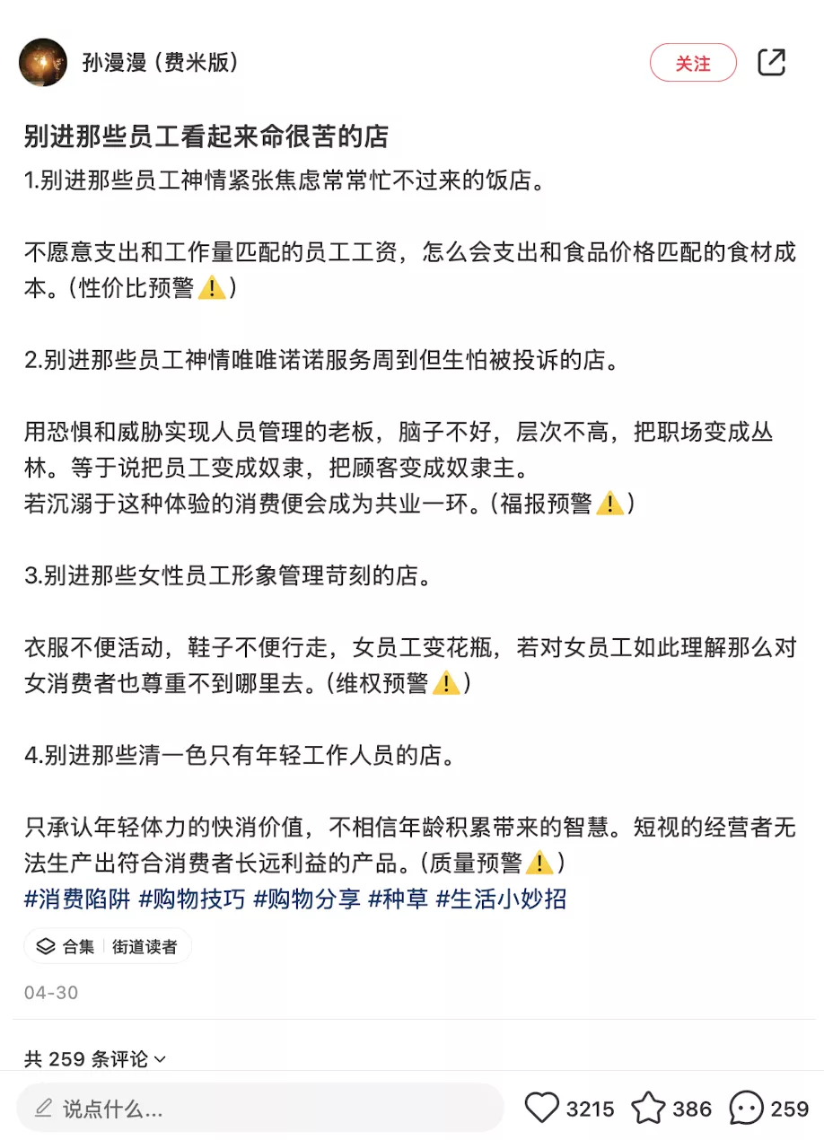 服务员本来就是活的人,但经营者偏偏用一套标准化SOP和严苛罚款把活人僵化抽干成伪人,然后再让伪人死气沉沉地表演活人。