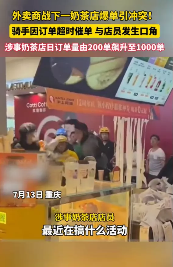 外卖员和店员爆发冲突。