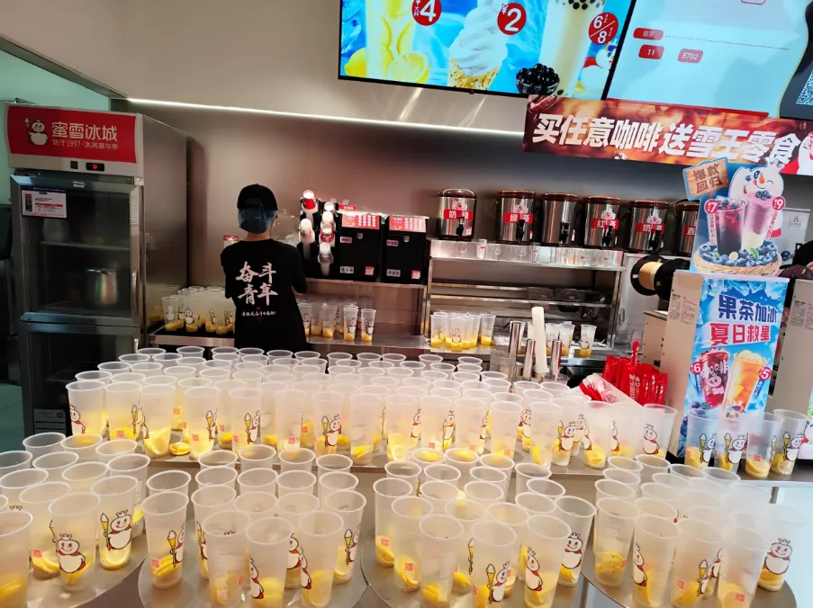 2020年以来,饮品市场迅速膨胀,一、二线城市核心商圈内茶饮店密度惊人,高达50家店铺聚集于1公里范围,市场已然饱和。这种白热化竞争迫使品牌们不断抢夺客源、拉高销量。在同质化产品竞争中,茶饮企业并非“无可奈何”,而是主动加码人力物力,打造“足料、复杂工序、高性价比”的爆款噱头,对“新品”与“手工鲜剥”的痴迷,不过是资本攫取流量和利润的工具。