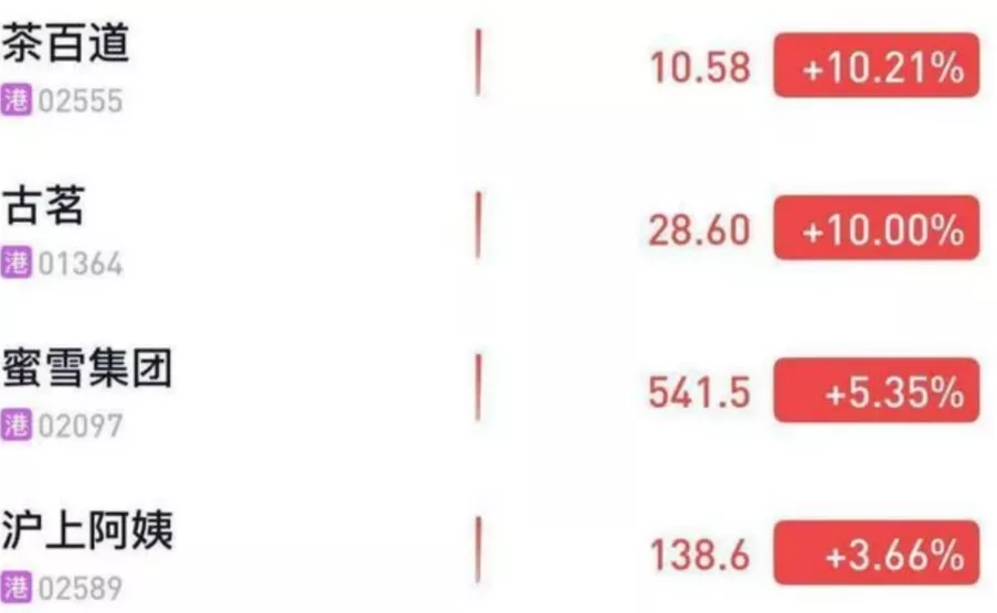 大战之后茶饮股大涨。