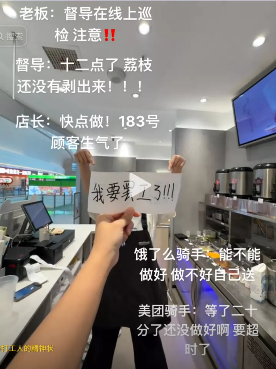 面对日复一日的高压劳动,一些员工选择了离职,以沉默的方式表达无法承受的痛苦。他们没有等来改善,只能先离开;也或许正在思考:我们究竟该如何劳动,如何生活。而更多人仍在岗位上挣扎,在每一杯爆单奶茶、每一笔补贴订单中被透支着身体。