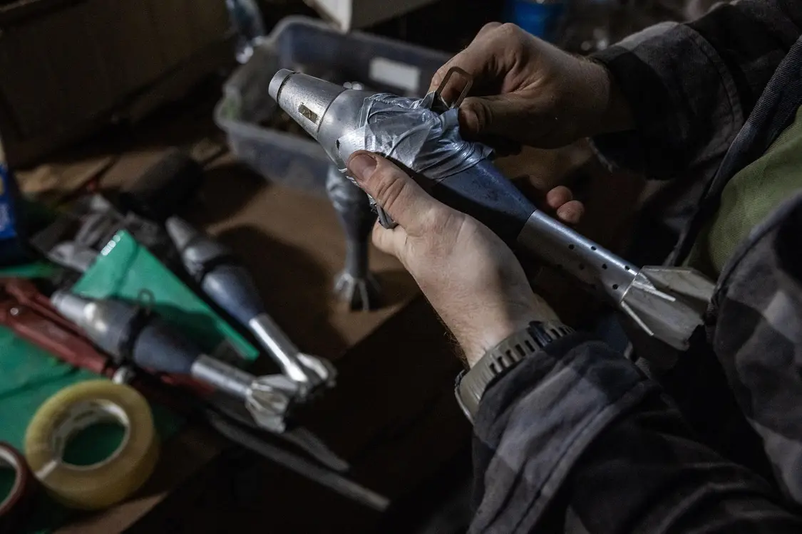 ▲当地时间8月14日,顿涅茨克,一名乌克兰士兵正在为无人机携带的弹药缠绕胶带 图源/视觉中国