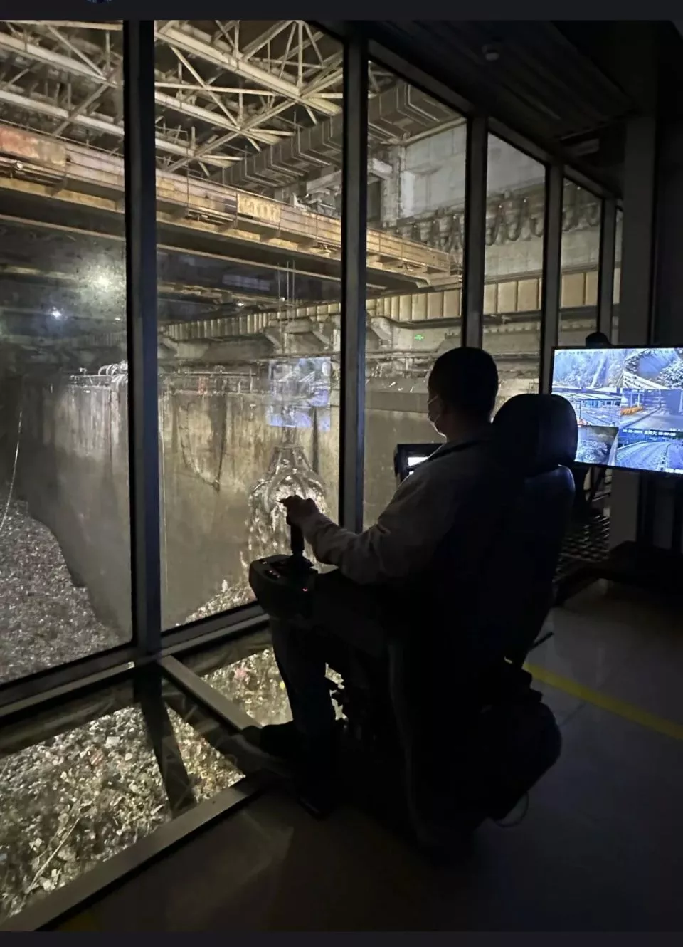 亲眼看着5米多高的机械爪在眼前挥动得虎虎生风,然后从发酵池里抓起巨量垃圾再扔到焚烧炉里。