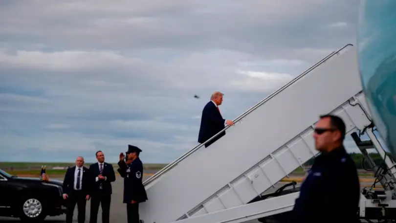 ▲泽连斯基之前已多特朗普在安克雷奇未能与俄罗斯总统普京达成协议后,在埃尔门多夫-理查森联合基地登上空军一号。(图源:美联社)