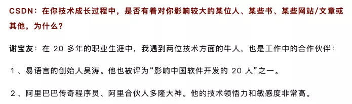 设计与实现》一书作者谢宝友时,他直言赞叹道:“阿里巴巴传奇程序员多隆大神,他的技术领悟力和敏感度非常高。”