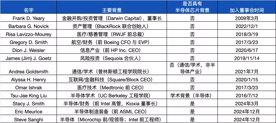 董事会“补足产业血统”:英特尔在 2024年12月一次性补进两位重量级半导体人物——前 ASML CEO Eric