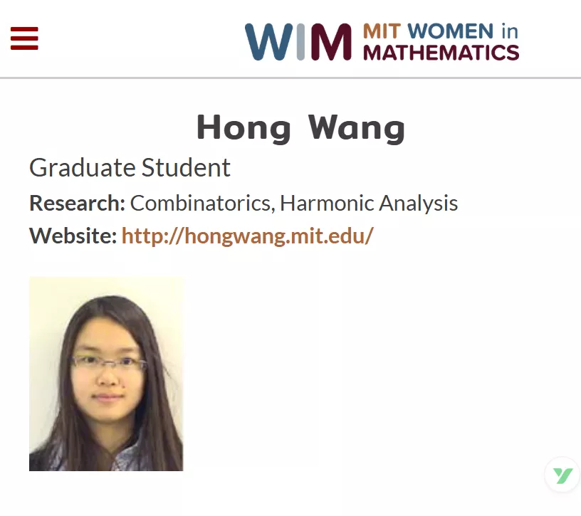 ■MIT官方的Women in Mathmatics主页,还有王虹读博时的专属页面