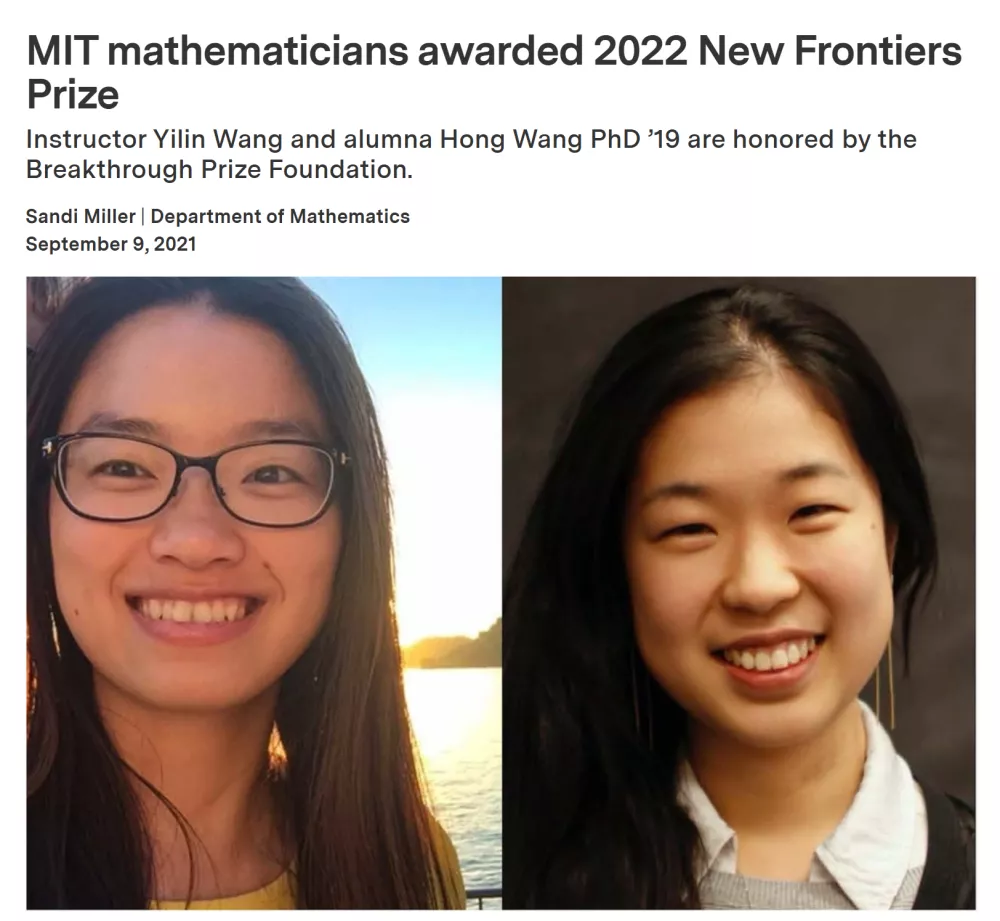 ■2021年,王虹和王艺霖同时获得2022年的玛丽亚姆·米尔扎哈尼新前沿奖,用来表彰女性数学家在职业生涯早期的成就,被MIT骄傲地在官网报道。如今,二人又在法国高科擦肩而过,各自奔向更值得期待的未来