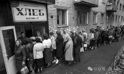 大排长龙的普通商店,当时苏联的城市居民普遍居住在拥挤不堪的赫鲁晓夫楼中