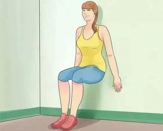 双脚分开与肩同宽,背靠墙,缓慢下蹲,膝盖不要超过脚尖,尽可能蹲至大腿与地面平行。保持静止不动,感受膝盖周围肌肉用力,保持静蹲20秒后,缓慢站起。5~10次为1组,每天练习1~2组。