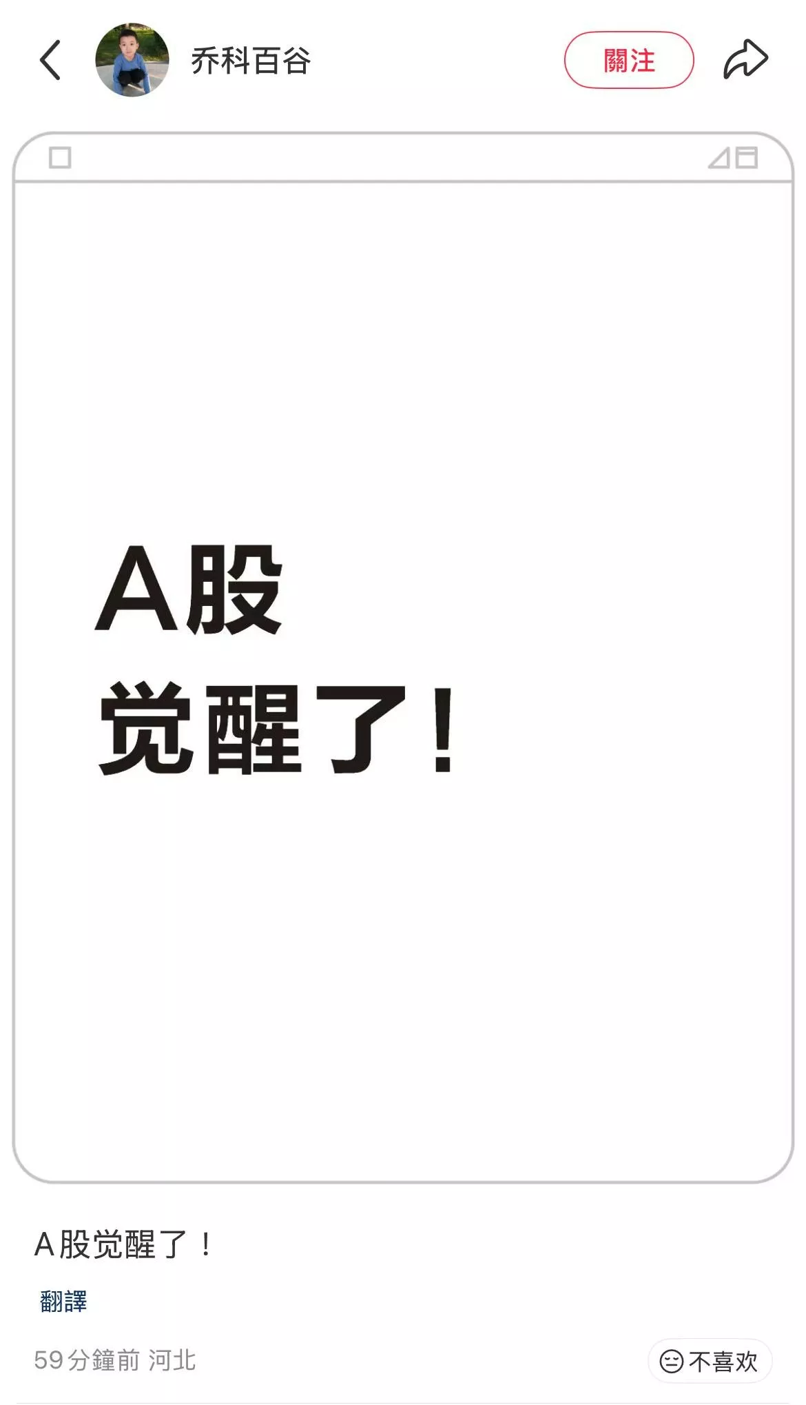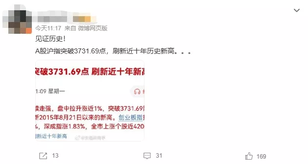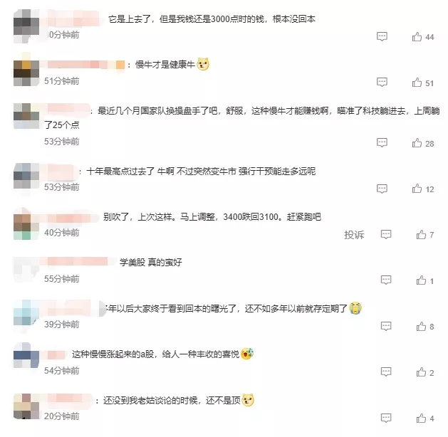 今次A股再涨登上微博热搜,有网民激动表示“见证历史”,称“A股终于觉醒”。