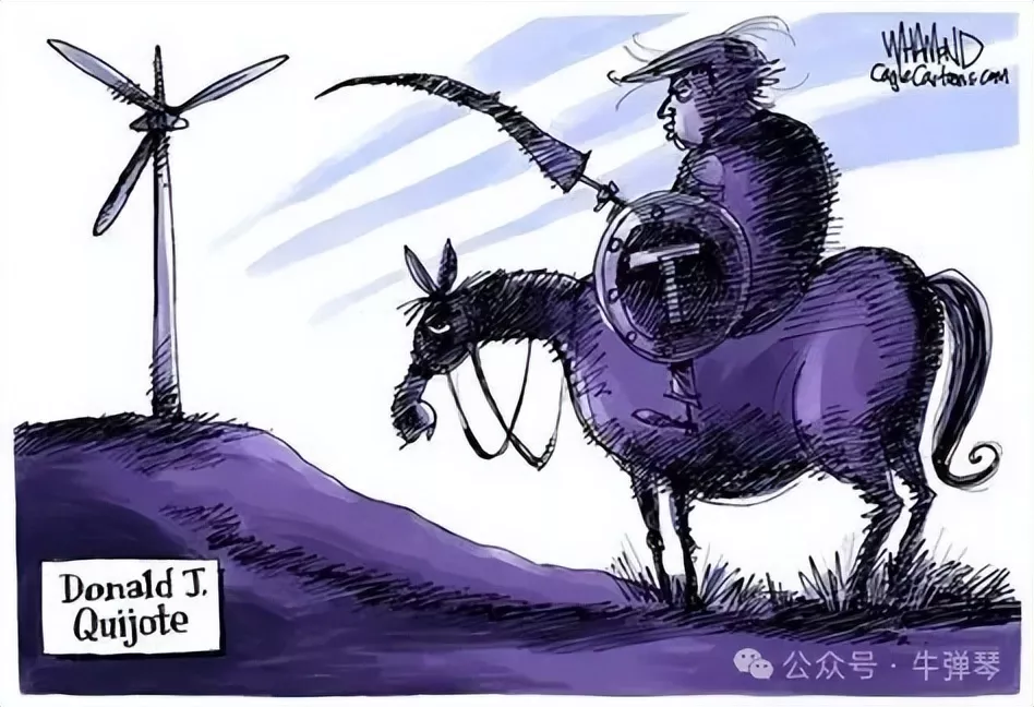 特朗普对风车宣战了,绝对是历史性一幕,感觉真不比唐吉坷德大战风车逊色多少。