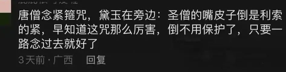 网友说的有林妹妹平时叨叨的那味了,也终于看到有人护着猴哥了,也有人说得过唐僧了。