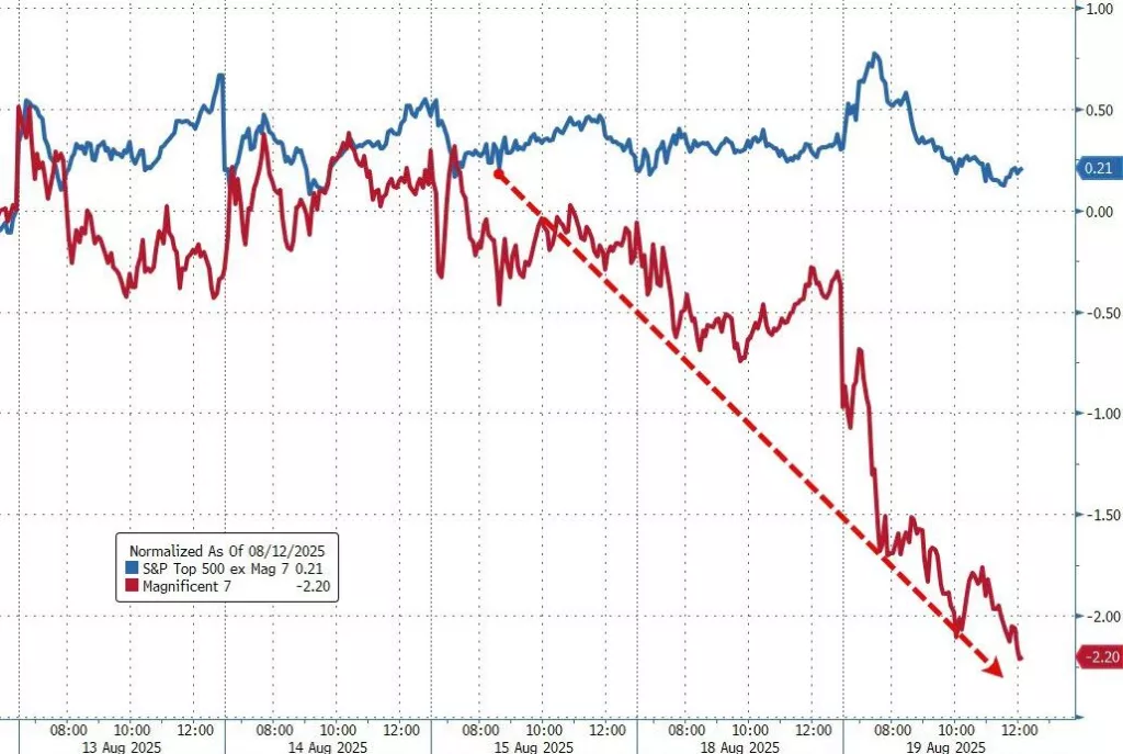 过去5天里,Mag7股票大幅下跌,而标普493指数基本持平。