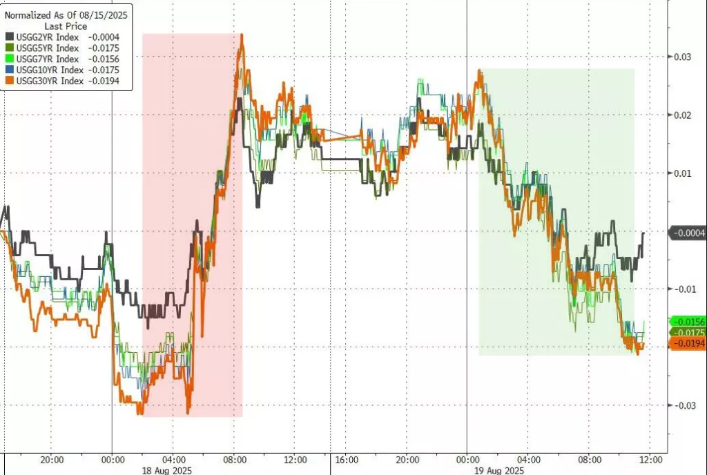 债券市场也印证了这一趋势。在风险资产承压之际,美国国债价格上涨,收益率随之走低。