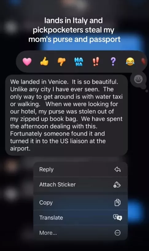 美国一名8宝妈到意大利威尼斯旅游,被3名女扒手偷走钱包、护照等物,她利用iPhone定位功能顺利逮到扒手,最终成功将失窃物品拿回。(TikTok截图)