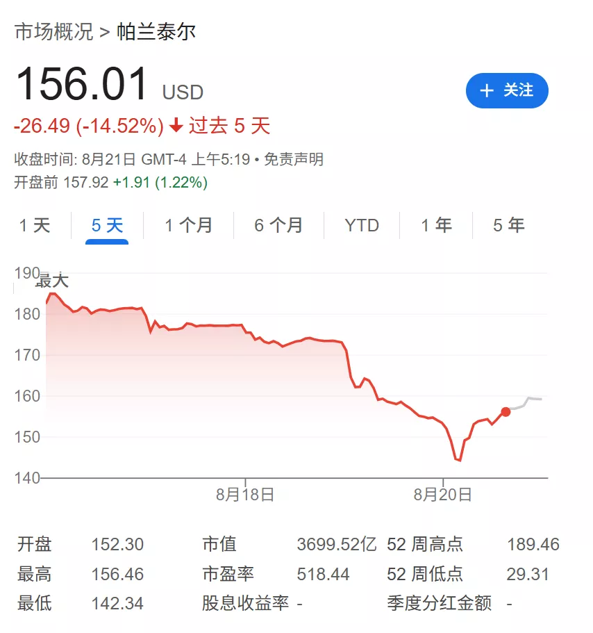 情报技术提供商Palantir是过去几天市场轮动中的最大输家之一。Palantir的股价自4月份的低点以来曾一度飙升超过150%,但该股已连续五个交易日收跌,创下自3月以来最长的连跌纪录,股价累计下跌超过15%。根据S3