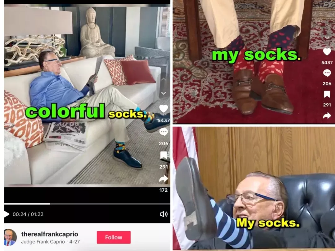 弗兰克法官在Tiktok上分享自己对彩色袜子的热爱,还整理了一套特有的穿搭理念
