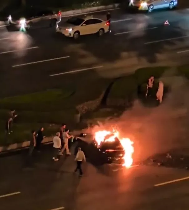 网络上流传的视频显示,驾驶受困车内,多名路人不顾自身安危,上前尝试营救,但都没有成功,怀疑是隐藏式门把导致车门无法开启。