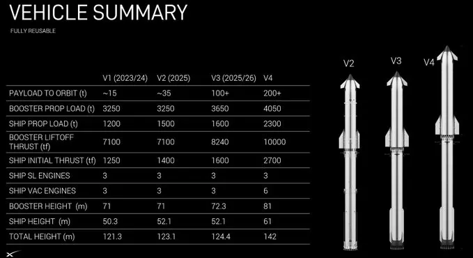 马斯克在今年3月份披露过,第三代星舰组合体已经在完善设计,2026年有信心实现100吨的有效载荷送入轨道,并且具备完全重复使用能力,然后在12个月内实现每周一次发射的频率。