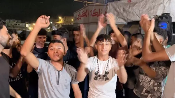 ▼停火协议生效后,加萨(上图)和以色列(下图)人民纷纷庆祝。