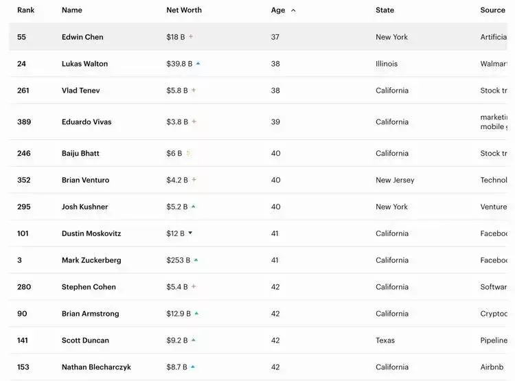 《福布斯》的新榜单出炉,今年美国最年轻的亿万富翁(10亿+美元),是一位37岁的华裔,名叫Edwin Chen,他的最新身价达到180亿美元(约1281亿人民币)。