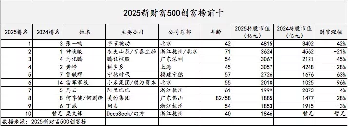 《2025新财富500创富榜》中,DeepSeek(深度求索)创始人梁文锋,以1846亿元身家首次跻身中国富豪榜第十名。