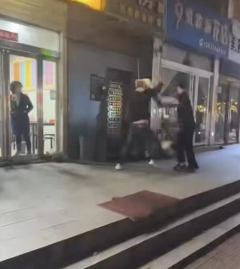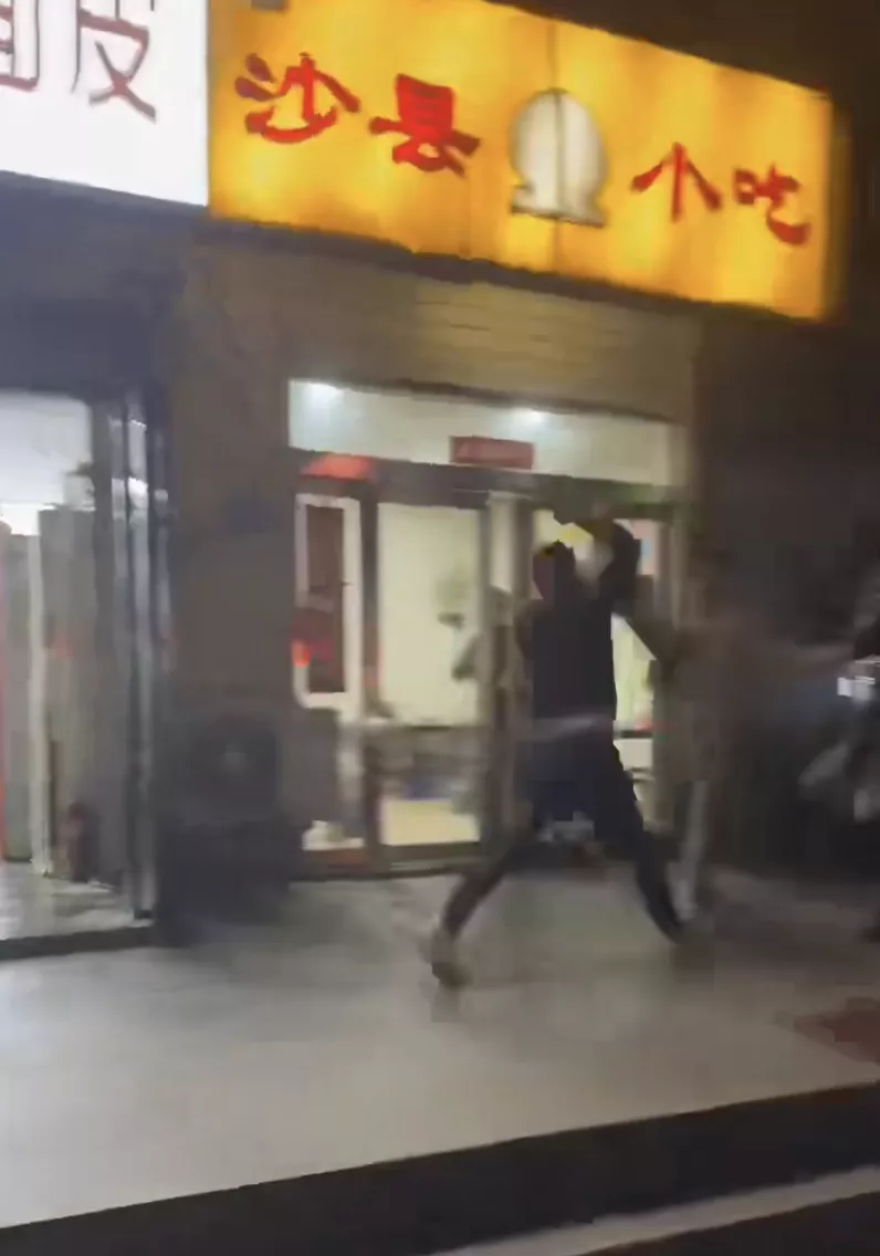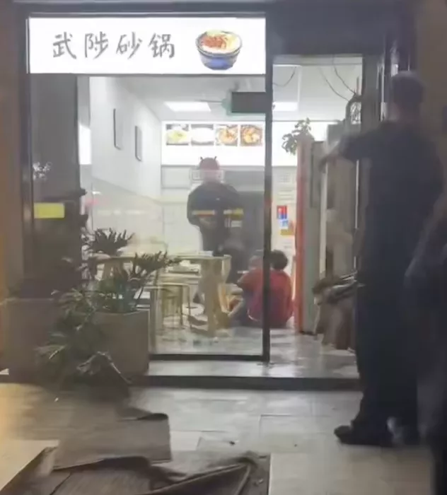 现场视频显示,一男子在一家砂锅店多次使用利器扎向倒地的红衣女子,门店外路人发现后开始靠近劝阻,随后该男子走出门店开始袭击刚才劝阻的路人男子,随后路人用折叠椅阻挡男子的攻击。