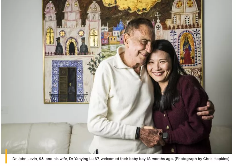 这位名叫 约翰·莱文(Dr. John Levin) 的医生,出生于上世纪30年代,是墨尔本著名的全科医生兼抗衰老专家。去年,他与37岁的第二任妻子陆洋颖(Yangying Lu,音译) 迎来了他们的第一个孩子——一个名叫 Gabby 的男婴,如今刚满18个月。