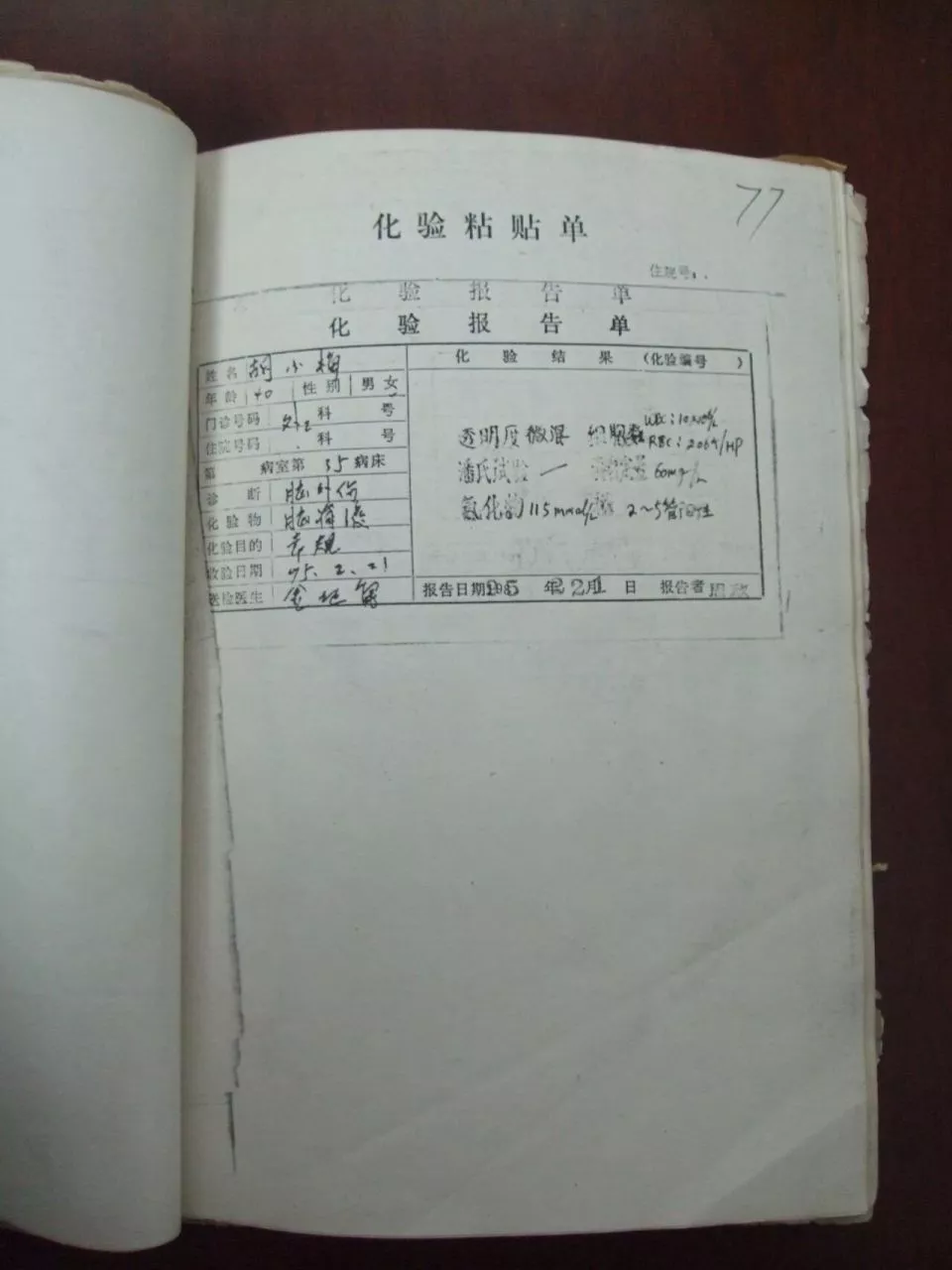 ▲胡小梅在空军医院的化验单,此为重抄件。受访者供图