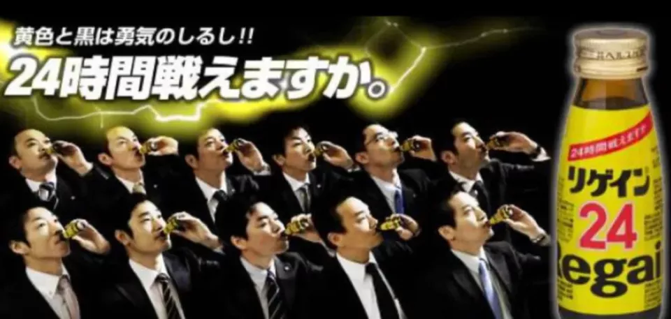 《广告业务员日记》的作者福永耕太郎,在日本泡沫经济鼎盛时期进入广告巨头电通集团工作。当时,日本有一首非常流行的功能饮料广告曲,歌词是这样写的:“黄色和黑色是勇气的象征,你能持续战斗24小时吗?”