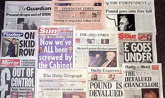 1992年“黑色星期三”后,英国报纸封面纽约时报