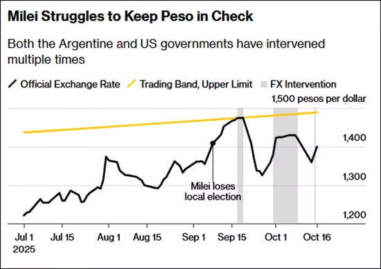 美国财政部的这次干预,确实在短时间内稳住了汇率,阻止比索在外汇市场再次跌破“1美元兑1400比索”的关口。