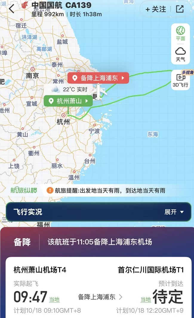 国航航班空中起火 浓烟灌满机舱 紧急迫降上海