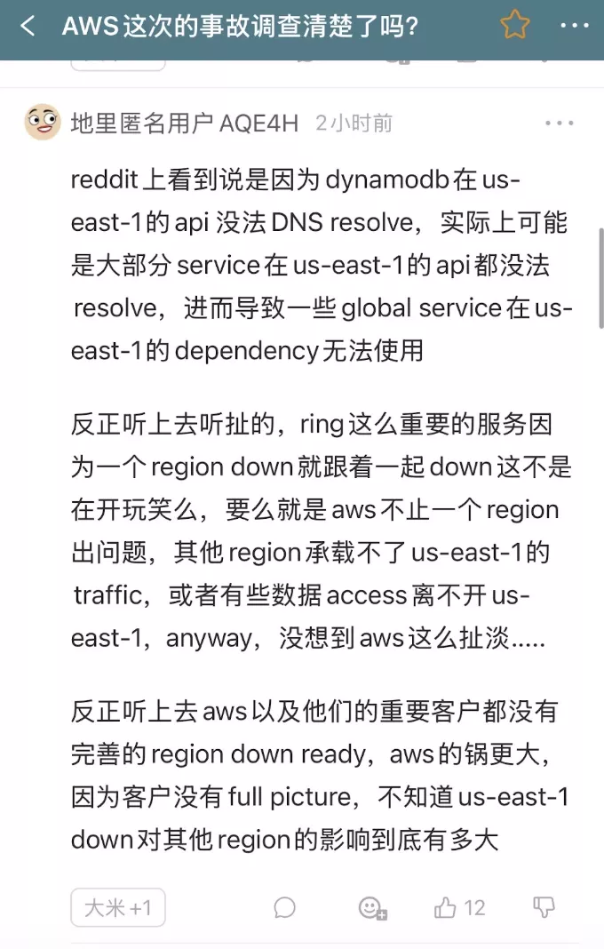 故障起始于10月20日美东时间凌晨(约 3:00 AM ET)左右,AWS 的 US-EAST-1