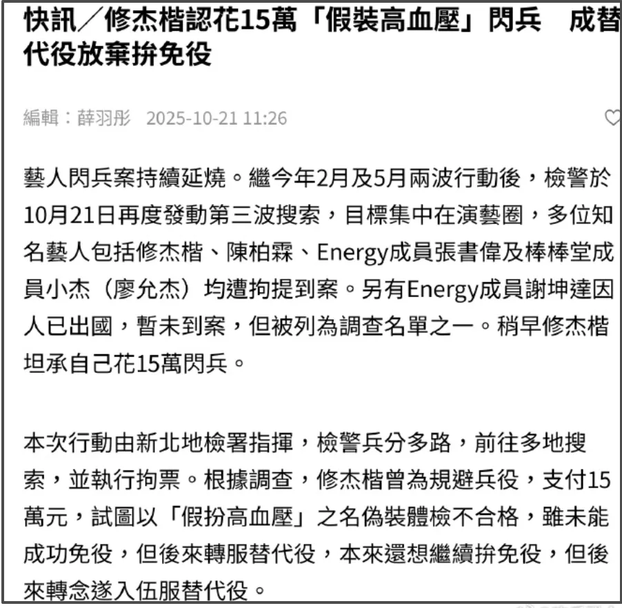 只能说,这一波兵役调查对于台娱圈来说,估计影响不小,不知道接下来还有谁会中招。