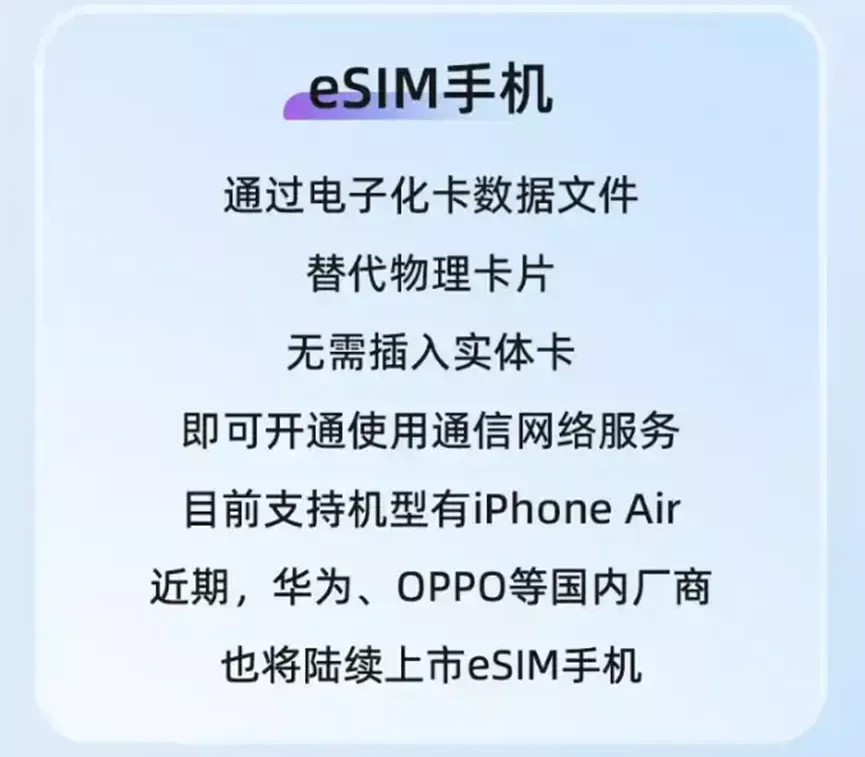 除此之外,目前国内支持eSIM的设备依然太过稀少,首批仅有iPhone 17 Air以及OPPO find X9 Pro顶配,主打一个未来可期。