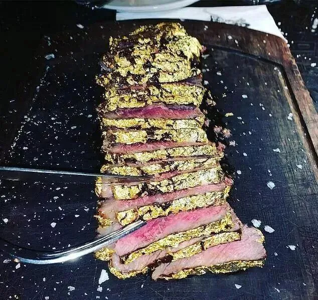 而那天价牛排,也被揭穿是“营销骗局”。员工透露只是裹了一层廉价的可食用金箔,就多卖了几百英镑。