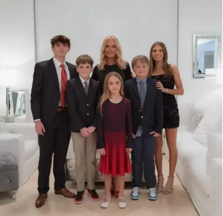 凯(右一)与母亲瓦妮莎以及4个弟弟妹妹。