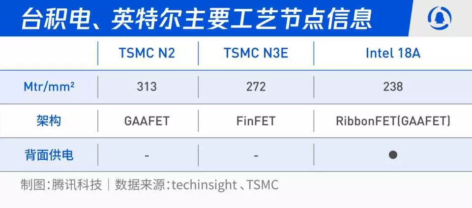 此前Techinsight发文称,基于高密度标准单元,台积电N2为313Mtr/mm²,即每平方毫米3.13亿颗晶体管,英特尔18A为238Mtr/mm²,即每平方毫米2.38亿颗晶体管。