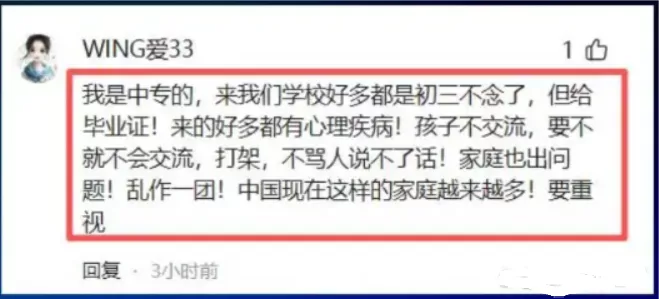 那个坐在教室后排,或许正吹着口哨、做着鬼脸的孩子,他真的是天生的“恶魔”吗?一位中专老师,提供了一个令人心碎的观察:“来我们学校的很多都是初三不念了,但给毕业证!来的好多都有心理疾病!家庭也出问题!”这寥寥数语,为我们勾勒了另一个真相:许多课堂上“无药可救”的行为,根源往往在课堂之外,在那些我们看不见的家庭裂痕与童年创伤里。