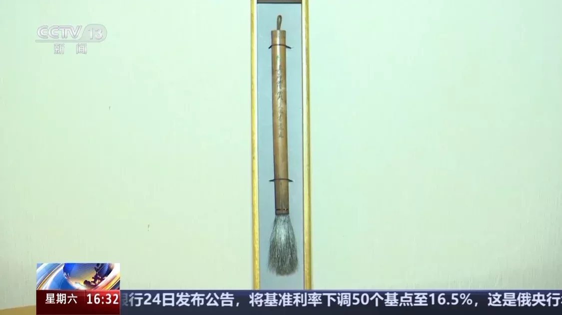 吴石烈士遗物捐赠人 庄珩:这个毛笔是吴石将军用过的毛笔,用过的痕迹都很大了。黑色的是残留的墨汁。