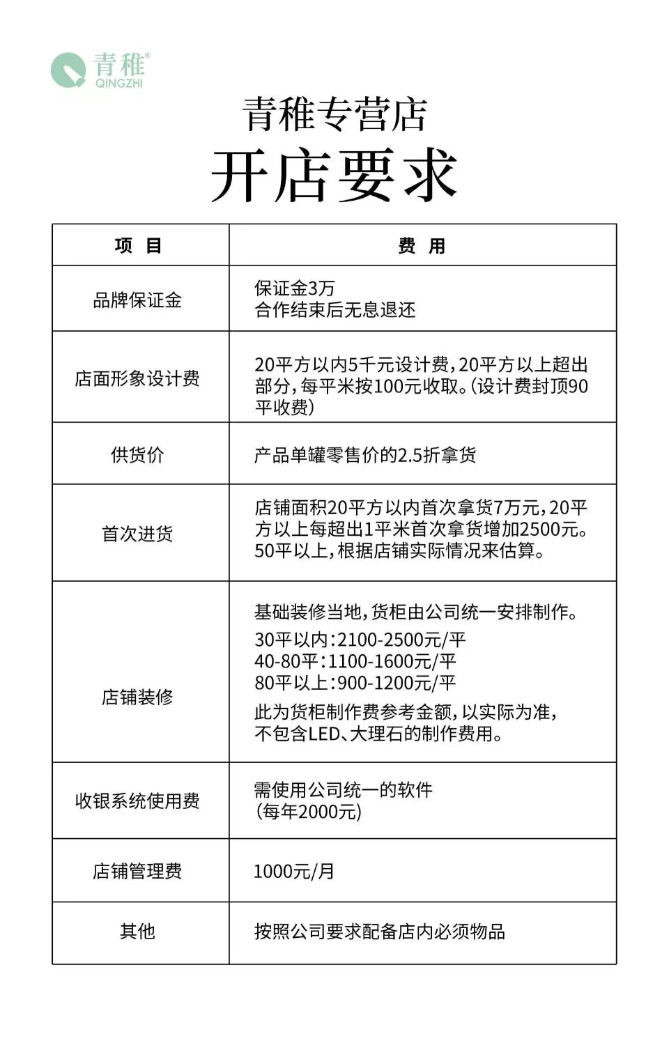 更聪明的是,“青稚” 通过标准化运营,进一步降低了开店成本。