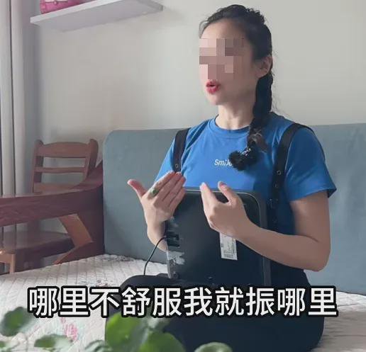 论认真程度,场导仪的用户有过之无不及,一位阿姨为了震起来更持久更方便,直接搞了自制了一个小背心,可以把场导仪捆在自己身上,解放双手。