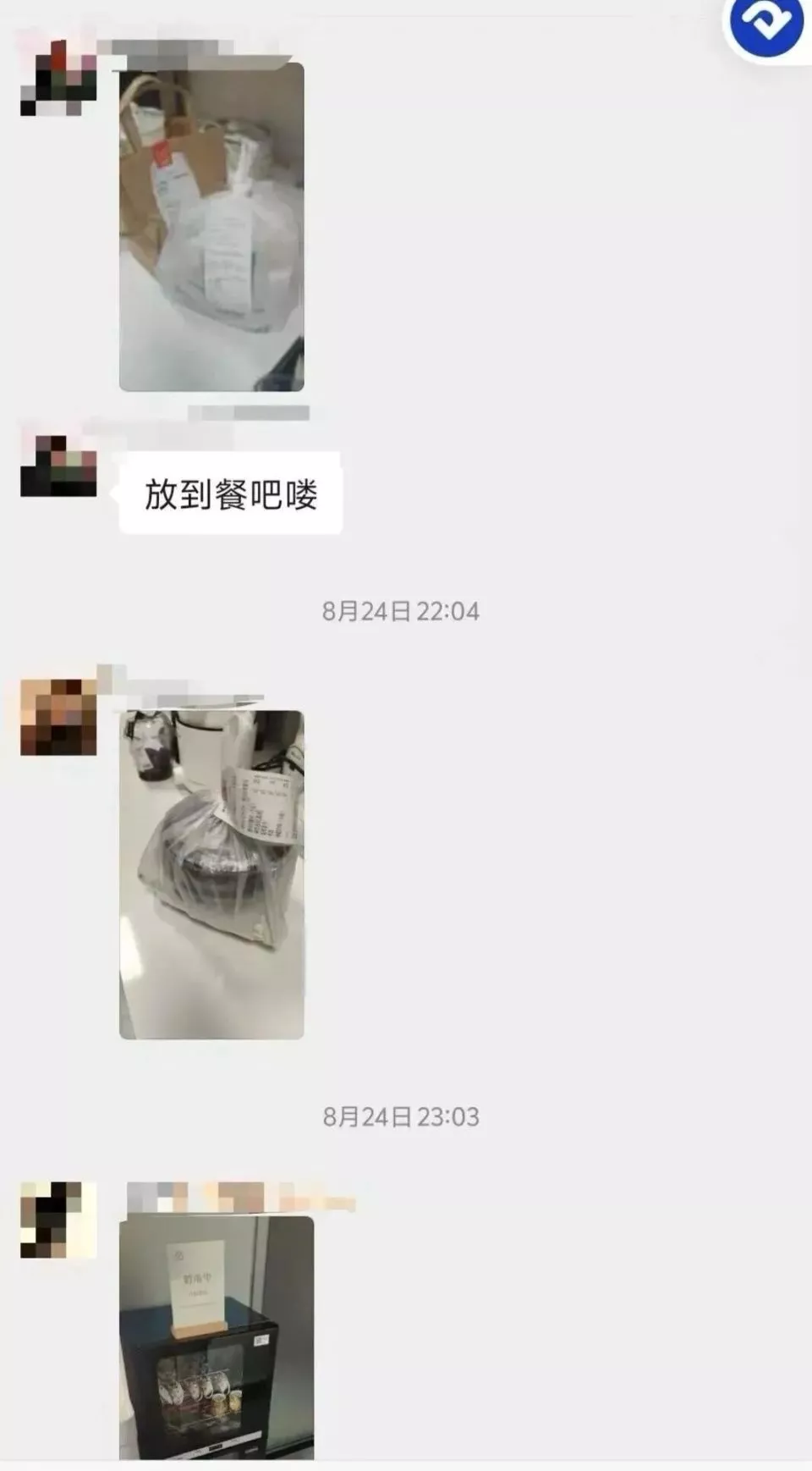 女孩们互相帮忙拿外卖