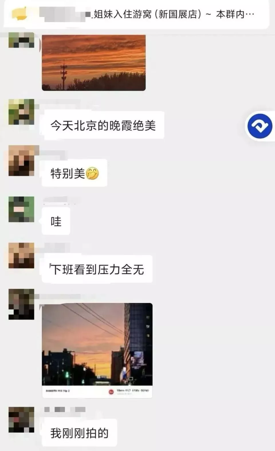 群里有人分享晚霞